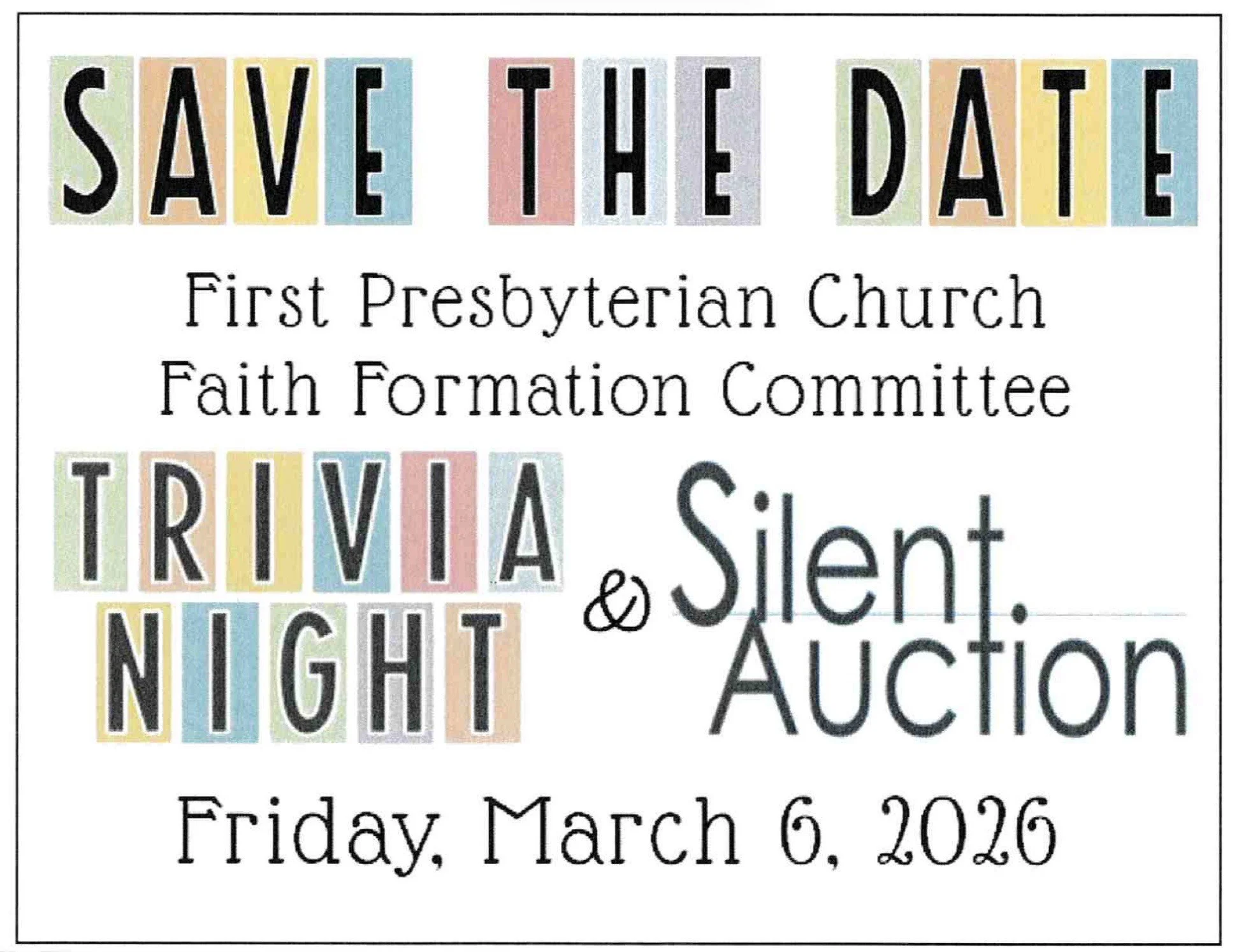 FRIDAY, March 6th: Trivia Night; doors open at 6pm; Trivia begins at 7pm.